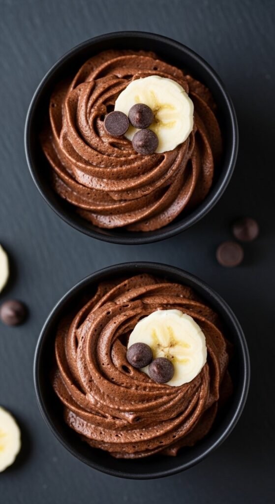 Ripe banana blended with melted dark chocolate and coconut cream creates a mousse that is naturally sweetened, dairy-free, and genuinely chocolatey — with the banana adding body without showing up strongly in the flavor.