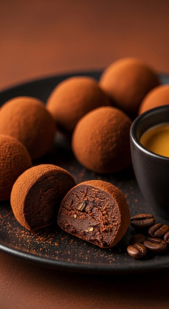 Adding espresso to a dark chocolate ganache truffle produces a flavor that is more complex and more sophisticated than either ingredient alone — the coffee deepens the chocolate and makes it taste richer and more bitter in the best possible way. Dissolve two teaspoons of instant espresso powder in one teaspoon of hot water and stir into the warm ganache before chilling. Roll in a mixture of fine cocoa powder and additional espresso powder for a dual-dusted coating. A small tin of instant espresso powder costs $4 and makes multiple batches. A batch of 20 espresso truffles costs about $6. These are the truffle most commonly requested after gifting — keep the recipe written down.