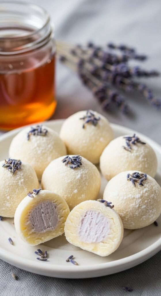 Honey lavender truffles are the most delicate and most aromatic of all truffle flavors — the floral lavender combined with the warm sweetness of raw honey creates a ganache that smells as beautiful as it tastes. Steep dried culinary lavender in warm cream for ten minutes, then strain and use the infused cream to make a white chocolate ganache. Add a tablespoon of good raw honey during the ganache mixing for additional floral sweetness. Roll into balls and coat in powdered sugar. Use culinary lavender specifically — ornamental lavender is not food-grade. Dried culinary lavender costs $4 for a small bag. A batch of 16 truffles costs about $7 total.