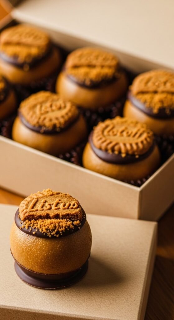 Biscoff cookie butter truffles are the most addictive truffle on this list — the warm spiced flavor of the cookie butter filling against a dark chocolate shell is the combination that makes people eat three before realizing they meant to stop at one. Mix room-temperature Biscoff spread with cream cheese and a little powdered sugar until the mixture holds its shape when rolled. Chill the filling, roll into balls, and dip in melted dark chocolate. Press a small piece of crushed Biscoff biscuit into the top of each truffle before the shell sets. A jar of Biscoff spread costs $4. A batch of 20 truffles costs about $7 total. The warm spiced aroma when opening the gift box is part of the gift.