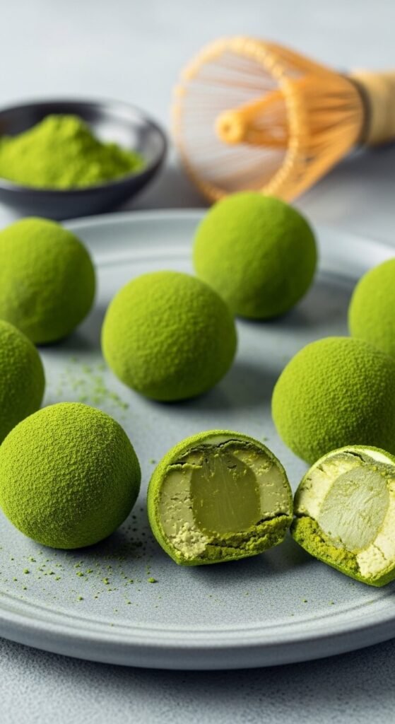 Matcha truffles are the most visually striking on this list — the vivid natural green of the matcha coating is unlike any other truffle color and looks genuinely spectacular in a gift box. Stir culinary-grade matcha powder into a warm white chocolate ganache until fully combined. The ganache takes on a pale green color from the matcha and a gentle earthy bitterness that balances the sweetness of the white chocolate perfectly. Refrigerate until firm and roll into balls. Coat in additional matcha powder for the vivid exterior. Culinary matcha costs $6 for a small tin. A batch of 18 truffles costs about $8. These are the truffle that most surprises people with how good they taste.