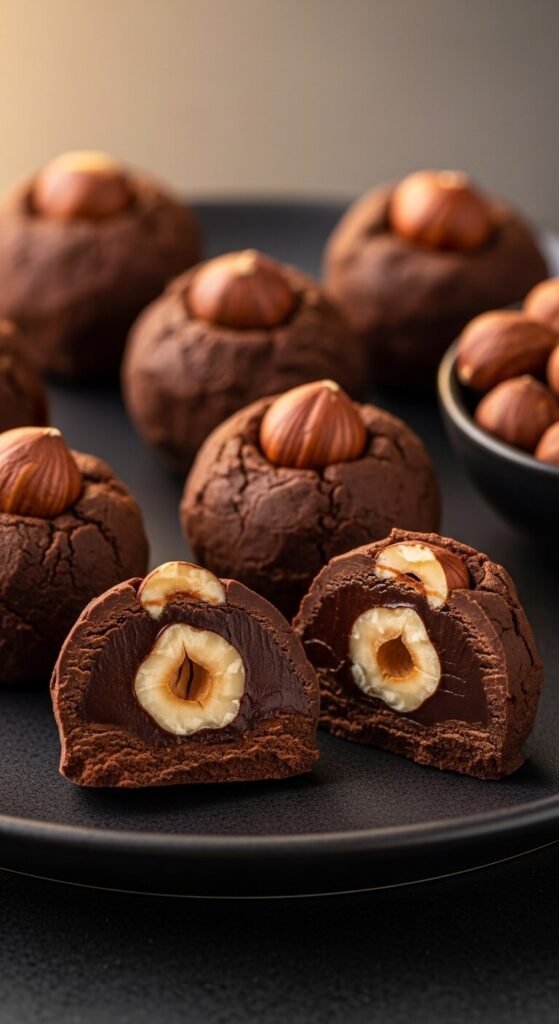 A whole roasted hazelnut pressed into the center of a dark chocolate truffle creates the most elegant of all truffle interior surprises — the snap of the whole nut against the smooth ganache is a textural experience that makes these truffles feel genuinely considered. Make a standard dark chocolate ganache and chill until barely scoopable. Flatten a small disc of ganache, press a whole toasted hazelnut in the center, wrap the ganache around the nut, and roll into a ball. Refrigerate until firm, then coat in cocoa or dip in dark chocolate. A bag of whole hazelnuts costs $4 to $6. A batch of 18 truffles costs about $7.