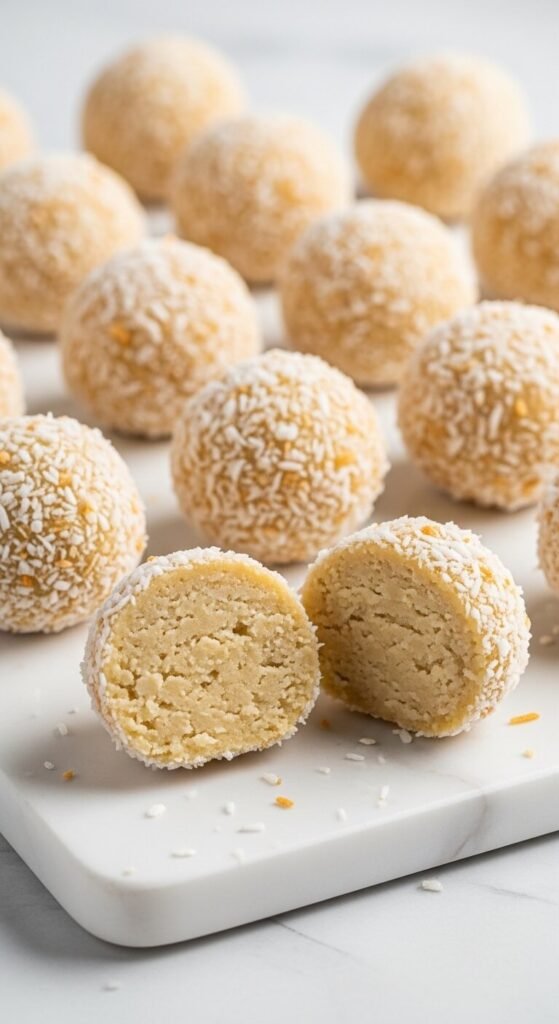 Vanilla whey protein, rolled oats, cashew butter, honey, and ceremonial-grade matcha produce a green ball with both protein and the natural caffeine from matcha — making these appropriate as a pre-workout snack as well as a post-workout recovery option. Use two teaspoons of matcha per batch — sift thoroughly before combining with other ingredients. The vanilla protein powder provides a neutral sweetness that balances the slight bitterness of the matcha. Do not use unflavored protein here — the combination of unsweetened protein and bitter matcha requires the vanilla’s sweetness for balance. Roll in fine shredded coconut. Makes 18 balls for about $5.