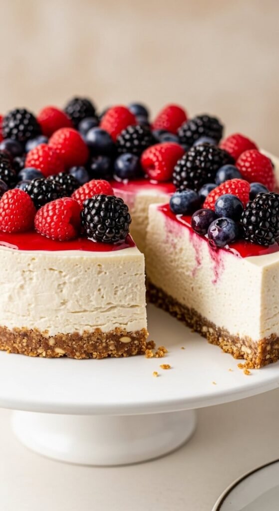 Soaked raw cashews blended with coconut cream, lemon juice, and maple syrup produce a cheesecake filling so smooth and rich that most people can’t tell it from the dairy original.