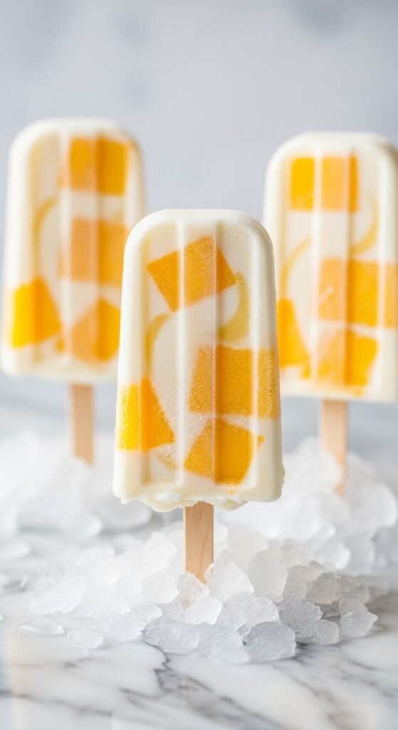 Coconut cream blended with ripe mango, poured into popsicle molds, and frozen creates a dairy-free ice cream bar that is rich, fruity, and genuinely satisfying straight from the freezer.