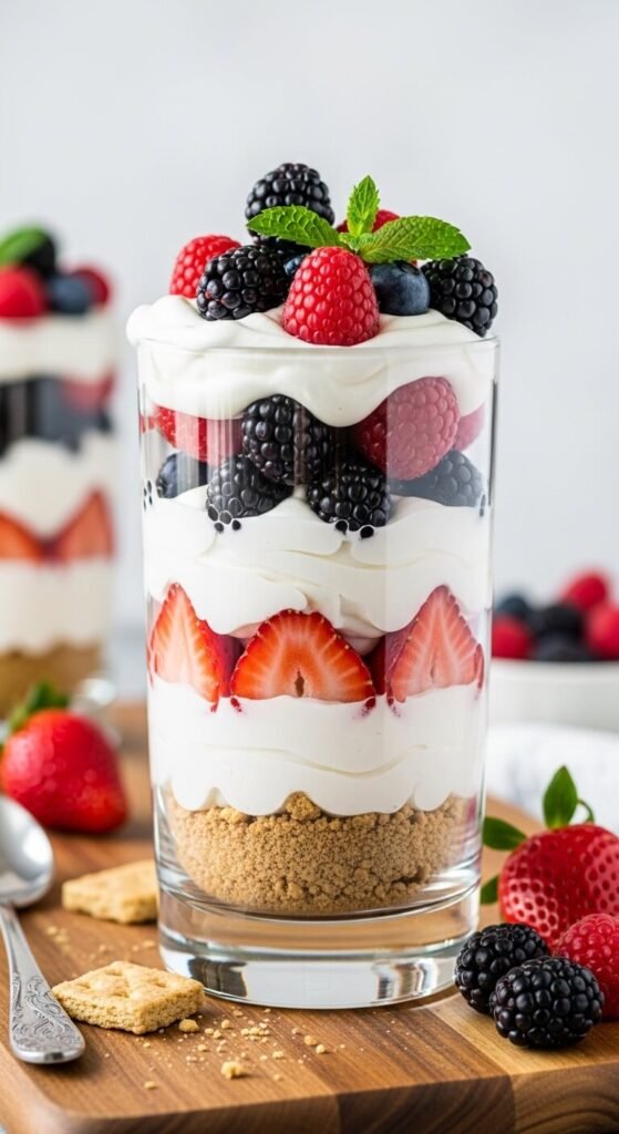 Layered in a clear glass with crushed cookies, coconut whipped cream, and fresh berries, this dairy-free trifle looks like a serious dessert and takes under 15 minutes to assemble.