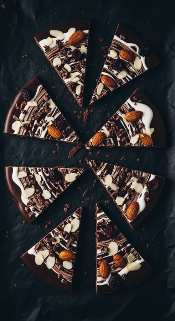 Coconut butter drizzled over melted dark chocolate bark creates a two-tone marbled effect that looks professional and tastes extraordinary — both ingredients are naturally dairy-free.