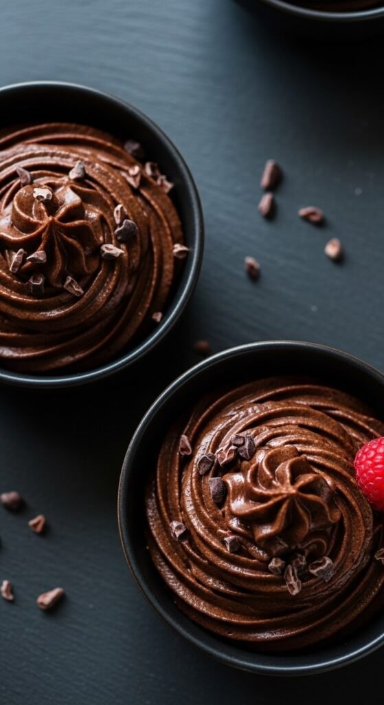 Refrigerate a can of full-fat coconut cream overnight. Scoop out the solid cream and whip until fluffy peaks form. Melt 100g of 70% dark chocolate, let it cool slightly, then fold gently into the whipped cream.