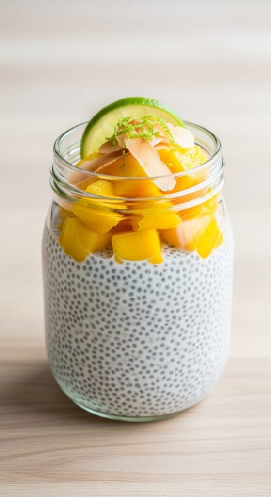 Top with diced mango, toasted coconut, and a squeeze of lime. Canned coconut milk produces a richer result than carton coconut milk — the fat content is what gives the pudding its creamy density. Total cost per serving: under $2.