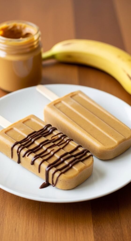 Banana peanut butter popsicles taste like a frozen version of the classic sandwich combination — the banana provides sweetness and creaminess while the peanut butter adds richness and a nutty depth that elevates the flavor considerably. Blend two ripe bananas with two tablespoons of natural peanut butter, a splash of milk, and a drizzle of honey until completely smooth. Pour into molds and freeze for four hours. For an upgrade, drizzle the unmolded popsicles with melted dark chocolate and refreeze for 20 minutes before serving. Overripe bananas — ones going brown — blend smoothest and taste sweeter. A batch of six popsicles costs about $2 total using ingredients already in most kitchens.
