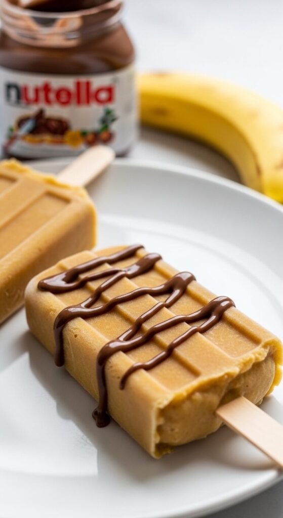 Nutella banana popsicles are the most indulgent on the list and the one that children specifically request by name after tasting once. Blend two ripe bananas with two tablespoons of Nutella, a splash of milk, and a pinch of salt until completely smooth. The Nutella provides both the chocolate-hazelnut flavor and the fat content that makes the popsicle creamy rather than icy. Pour into molds and freeze for four hours. For an extra touch, drizzle slightly warmed Nutella across the unmolded popsicle and refreeze for 20 minutes. A standard jar of Nutella makes three to four full batches. A batch of six popsicles costs about $2 total using bananas from the kitchen.