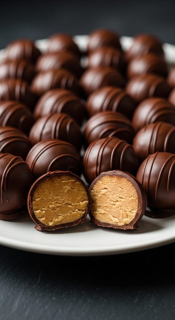 Mix 1 cup of peanut butter with 1 cup of powdered sugar until a firm dough forms. Roll into small balls. Dip each one into melted chocolate chips and place on parchment paper. Refrigerate for 5 minutes until set. Three ingredients. Zero oven required. Budget tip: Store-brand peanut butter and generic chocolate chips cost a fraction of premium versions and produce identical results. One batch makes roughly 20 balls for just a few dollars total. Store in the fridge for up to a week — if they last that long.