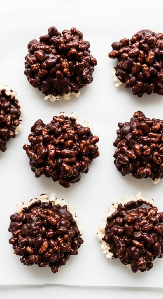 Melt 1 cup of chocolate chips in the microwave. Stir in 2 cups of puffed rice cereal until every piece is coated. Drop spoonfuls onto parchment paper. Let set at room temperature for 10 minutes or freeze for 3 minutes. Three ingredients, maximum crunch. Budget tip: Generic puffed rice cereal is available at supermarkets for a very low price — often less than half the cost of name-brand versions. Dark, milk, or white chocolate all work here depending on your preference. Make a large batch on Sunday and store in an airtight container for the entire week’s dessert supply.