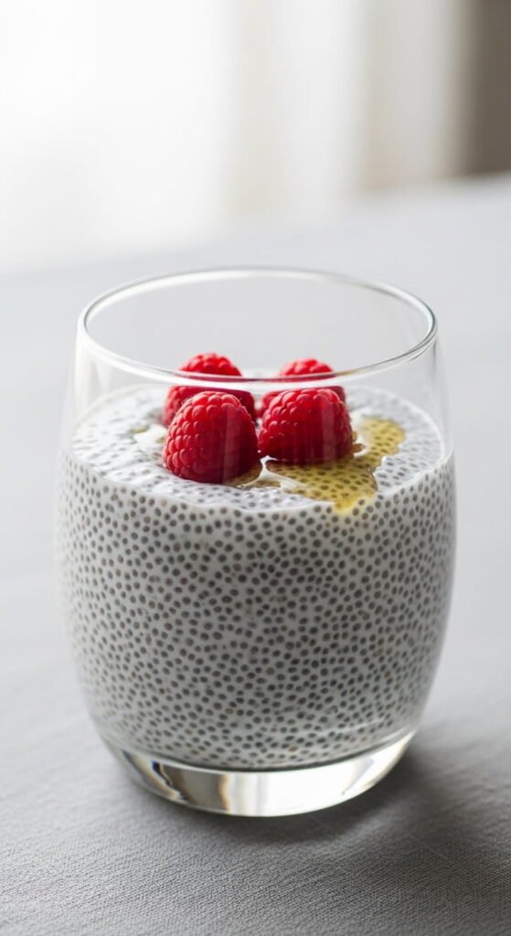 Stir 3 tablespoons of chia seeds into 1 cup of milk with 1 teaspoon of vanilla extract and 1 tablespoon of honey until fully combined. Let sit for 10–15 minutes, stirring once halfway through. The chia seeds absorb the liquid and thicken into a pudding. Budget tip: Regular dairy milk makes the creamiest version at the lowest cost. Chia seeds seem expensive upfront but each serving uses only a few tablespoons — one bag makes dozens of servings. Flavor with a pinch of cinnamon at zero extra cost. Make several jars at once and refrigerate — they improve in texture overnight and keep well for four days.