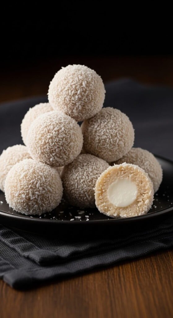 Stir 1 cup of desiccated coconut into ½ cup of sweetened condensed milk with a pinch of vanilla extract until a thick dough forms. Roll into small balls. Roll each ball in extra shredded coconut. Refrigerate for 5 minutes. Done. Budget tip: Sweetened condensed milk is widely available in affordable store-brand versions. Desiccated coconut from the baking aisle is significantly cheaper than buying specialty bags from health food stores. A single batch costs under three dollars and makes approximately 15 truffles. These keep well in the fridge for up to five days.
