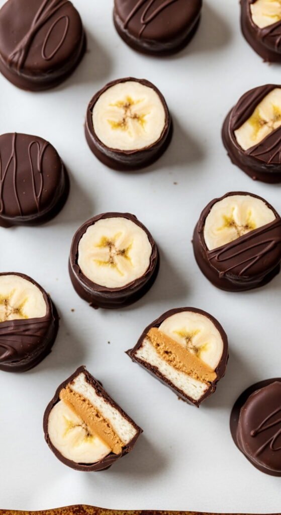 Slice a banana into coins. Spread peanut butter onto one coin and press another on top to create a small sandwich. Place on parchment and freeze for 5 minutes. Dip each sandwich in melted dark chocolate and return to the freezer for another 5 minutes. Budget tip: One banana and a few tablespoons of peanut butter makes a full serving for under fifty cents. Chocolate chips melted with a tiny drop of coconut oil create a smooth dipping chocolate that sets quickly. Keep a bag of these in the freezer at all times for instant dessert access whenever the craving hits.