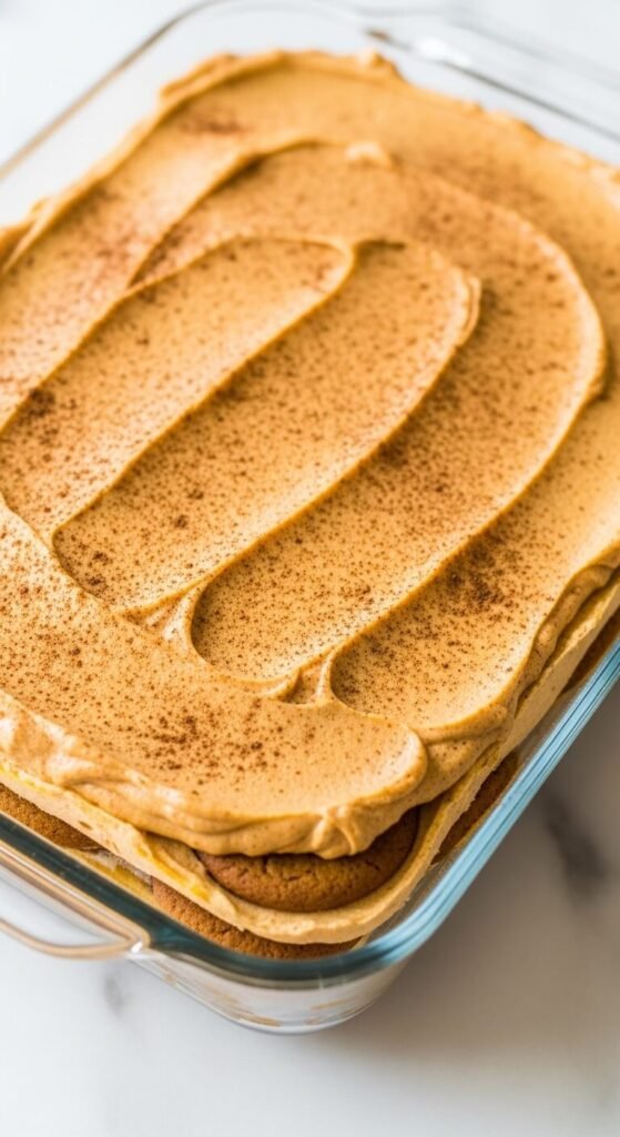 Gingersnap cookies and pumpkin spice cream in alternating layers produce the definitive autumn icebox cake — the most appropriate no-bake Thanksgiving dessert alternative for anyone who wants to skip the baking stress entirely. Fold one cup of pumpkin puree and two teaspoons of pumpkin pie spice into two cups of sweetened whipped cream and 4 oz of softened cream cheese. The pumpkin adds both flavor and subtle color — the finished cream is a warm, pale amber-orange. Layer gingersnaps and pumpkin cream in three complete cycles in a 9×13 dish. Refrigerate overnight. Dust with cinnamon and nutmeg before serving. The spiced gingersnap base amplifies every warming spice note in the cream.