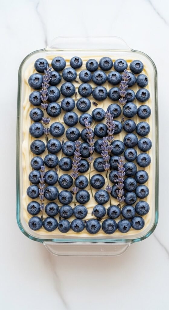 Vanilla wafers, white chocolate lavender cream, and fresh blueberries in alternating layers produce the most distinctively flavored and most visually elegant icebox cake in this list — a combination that tastes genuinely sophisticated and looks like it required professional dessert training. Melt 3 oz of white chocolate chips with two tablespoons of cream, cool completely, and fold into two cups of sweetened whipped cream with ½ teaspoon of culinary lavender-infused honey. The white chocolate adds a rich, buttery depth that plain whipped cream lacks. Layer with Nilla wafers. Refrigerate overnight. Cover the top completely with blueberries and press dried lavender flowers between rows. The white and deep purple palette is one of the most striking in summer desserts.