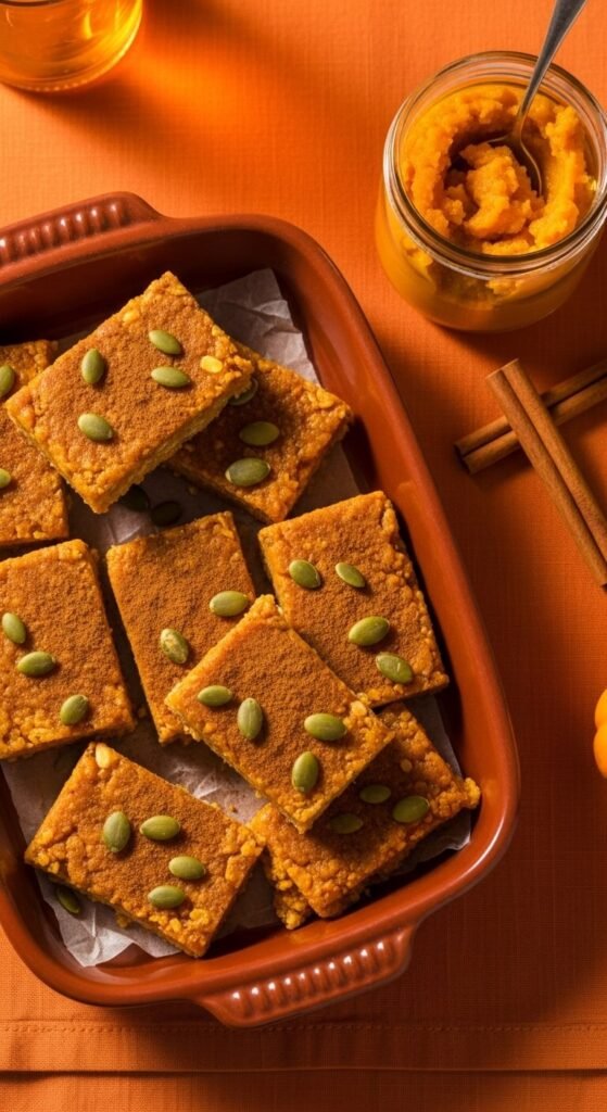 Two tablespoons of pumpkin puree stirred into the warm binder adds a subtle earthiness and a warm amber colour without making the bars wet. Reduce the honey by one tablespoon to compensate for the moisture. Add a full teaspoon of pumpkin pie spice and a half teaspoon of cinnamon directly to the binder before mixing in oats. Fold in pepitas and dried cranberries for texture. Press firmly and scatter extra pepitas across the top. These are a seasonal staple for good reason — they smell incredible, hold together well, and taste exactly like autumn in bar form.