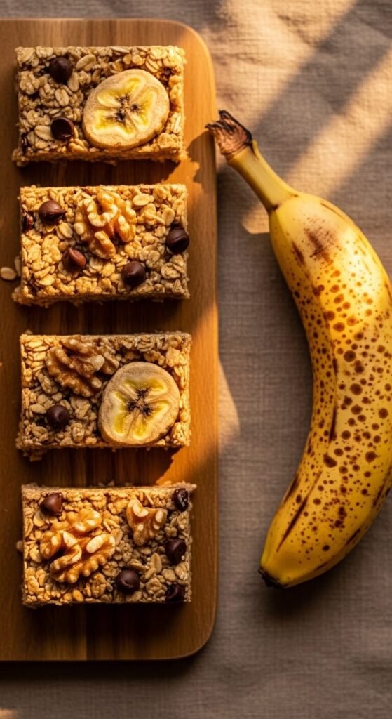 Ripe banana and creamy peanut butter together provide enough natural sweetness, fat, and binding power to make a granola bar with zero added sugar whatsoever. Mash one very ripe banana until completely smooth, stir in peanut butter, rolled oats, cinnamon, vanilla, and a pinch of salt. The banana sweetens, the peanut butter binds, and the oats give structure. Press banana chips into the top surface for a decorative, crunchy finish. These are naturally sweetened, genuinely filling, and considerably cheaper per bar than commercial no-sugar options. Refrigerate and eat within five days.