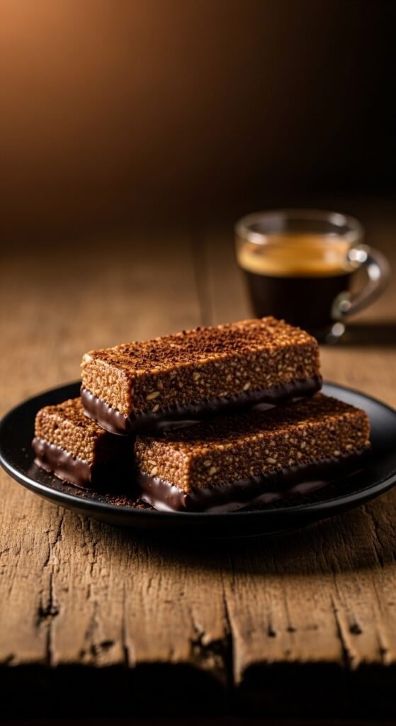 One teaspoon of instant espresso powder stirred into the warm honey-almond butter binder transforms a standard chocolate granola bar into something with real depth and complexity. The coffee doesn’t taste like coffee in the finished bar — it makes the chocolate taste more intensely like chocolate. Add two tablespoons of cocoa powder to the binder alongside the espresso. Fold in rolled oats and dark chocolate chips. Press into a pan and dip the base of each cut bar in melted dark chocolate for a snappy bottom coating. These are best eaten cold, straight from the fridge.
