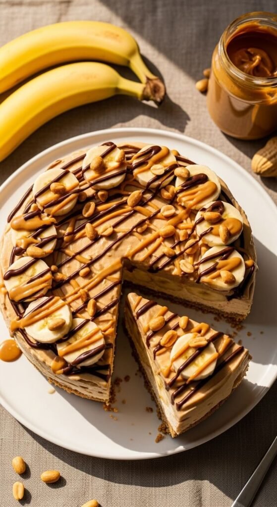 A graham cracker crust base, a layer of banana ice cream, a layer of peanut butter ice cream, and a topping of banana slices, chocolate drizzle, and roasted peanuts creates an ice cream cake version of the classic banana split. Freeze each ice cream layer completely before adding the next — a minimum of two hours each. Add banana slices, peanut butter drizzle, chocolate drizzle, and chopped roasted peanuts across the top just before serving rather than before the final freeze, as bananas brown and chocolate drizzle loses its visual impact when frozen solid for extended periods. This cake appeals to virtually every age group at a summer gathering.