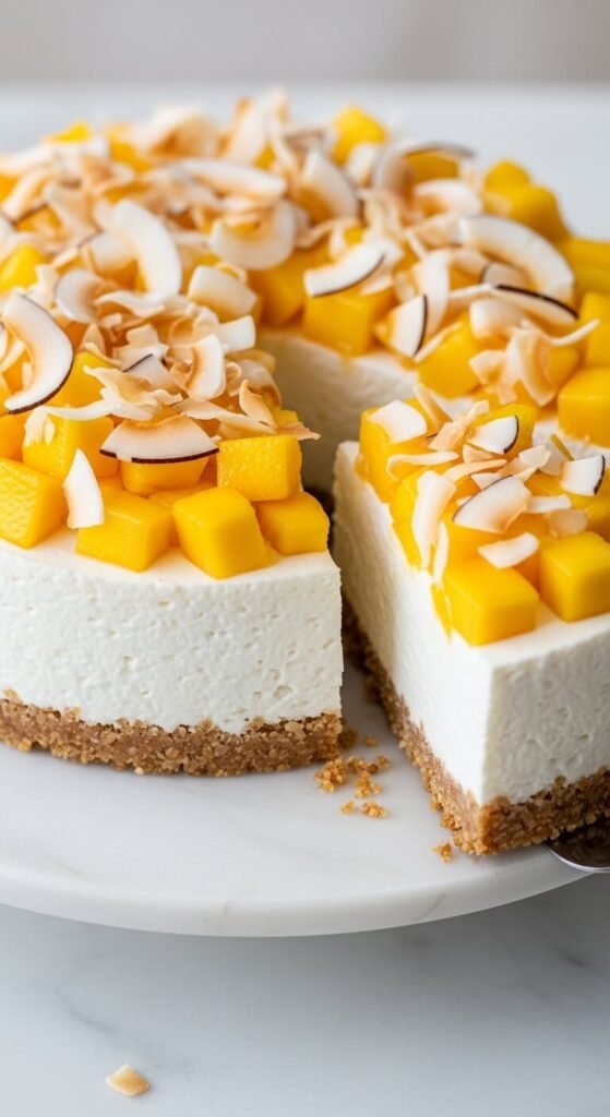 1. No-Bake Coconut Cheesecake With Mango Topping