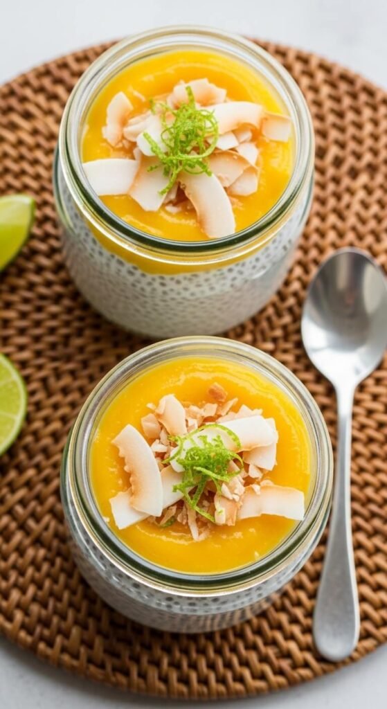 Chia seeds soaked overnight in full-fat coconut milk create a pudding that is thick, creamy, and completely set with zero cooking — topped with mango it’s one of the easiest tropical desserts you can make.