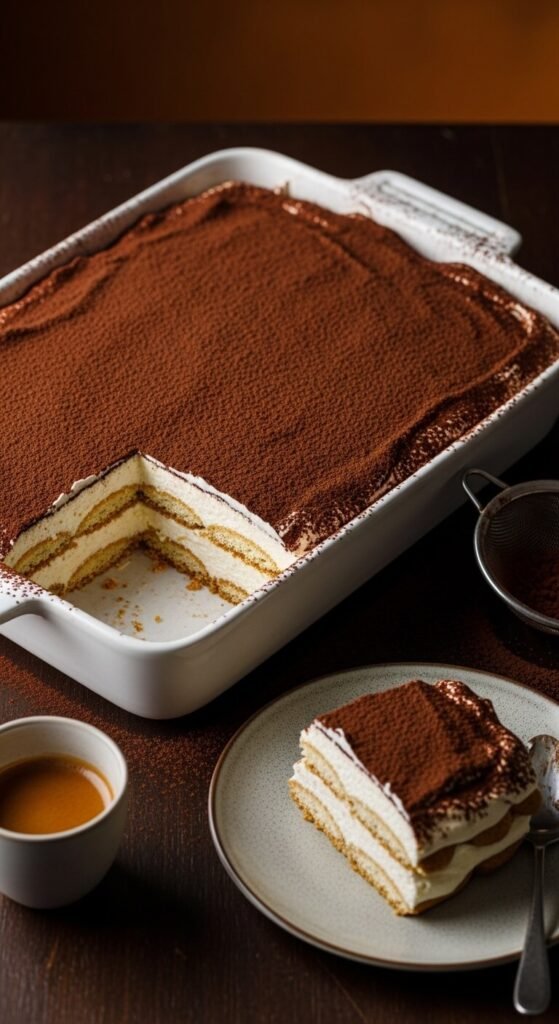 Tiramisu eclair cake takes the classic layered format and applies Italian coffee-house flavors — the graham crackers are dipped in espresso and the cream gets mascarpone mixed through it for an authentic tiramisu depth. Brush or briefly dip each graham cracker in cold strong espresso before laying in the dish. Mix softened mascarpone into the vanilla pudding before folding in the whipped topping. Layer as usual. Dust the top surface heavily with fine unsweetened cocoa instead of chocolate frosting. Refrigerate overnight. The espresso-soaked crackers produce a much more complex flavor than the standard version. Instant espresso powder costs $4 and makes many batches. Serves twelve for about $11 total.