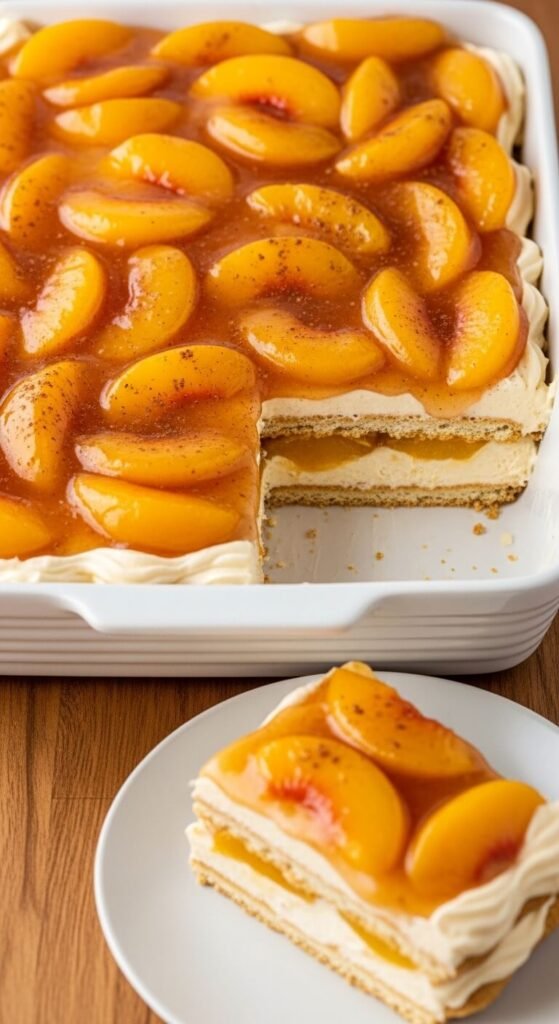 27. Peach Cobbler Eclair Cake