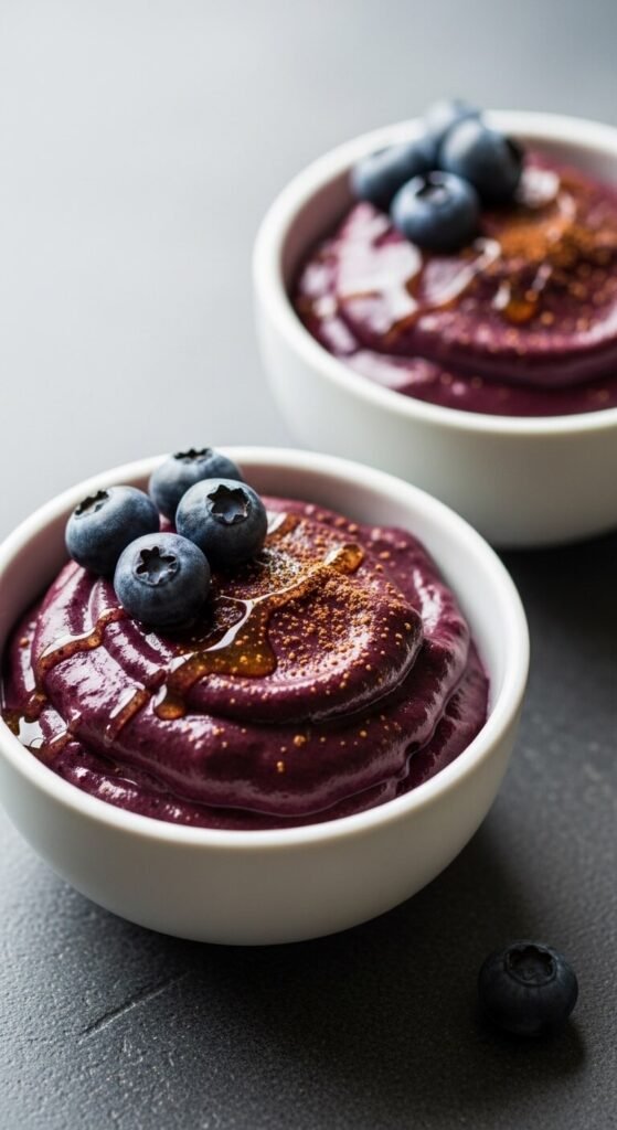 Blend one frozen acai packet with ½ cup of frozen blueberries and 3 tablespoons of coconut cream until completely smooth and mousse-like. Spoon into bowls and serve immediately or freeze briefly for a firmer texture. Packed with antioxidants and naturally low in sugar. Budget tip: Frozen acai packets can seem expensive — substitute with extra frozen blueberries and a tablespoon of raw cacao powder for a nearly identical deep purple color and antioxidant profile at a fraction of the price. This recipe uses no added sweetener beyond the natural fruit sugars, making it one of the lowest-sugar desserts on this list.
