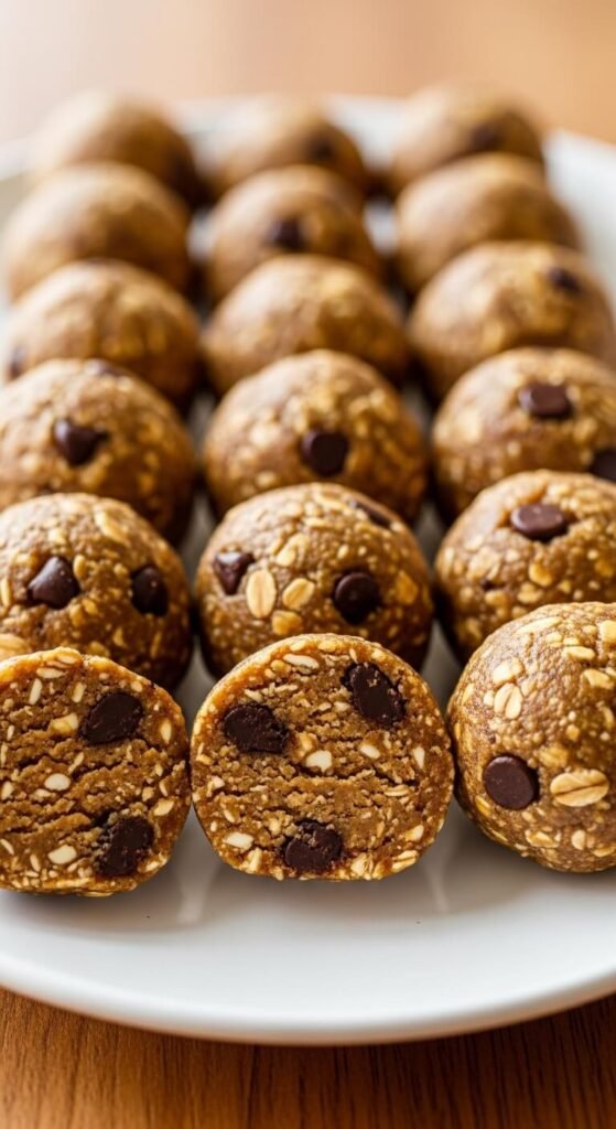 Mix 1 cup of rolled oats, ½ cup of almond butter, 3 tablespoons of honey, a pinch of cinnamon, and a handful of dark chocolate chips until the mixture holds together. Roll into balls. Refrigerate for 10 minutes. High in fiber, protein, and healthy fats — these are genuinely filling. Budget tip: Regular peanut butter is more affordable than almond butter and works identically in this recipe. Rolled oats are one of the cheapest pantry staples available. Make a double batch on Sunday and refrigerate — they keep for a full week and work as both a dessert and a post-workout snack.