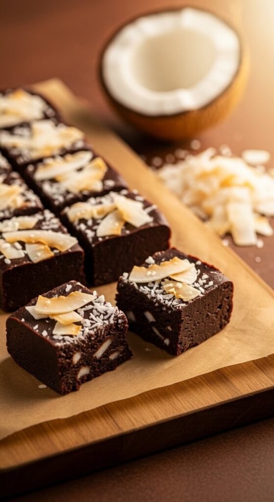 Toasted coconut changes the entire character of a standard chocolate fudge — the toasting creates a warm, nutty flavour that raw coconut simply doesn’t have. Toast shredded coconut in a dry pan for three to four minutes, stirring constantly, until golden. Fold one cup directly into the warm dark chocolate-condensed milk fudge base before pouring into the pan. Use coconut oil instead of butter when melting the chocolate for a fully tropical flavour throughout. Press extra toasted coconut across the top. Add a quarter teaspoon of coconut extract alongside the vanilla for a deeper, more assertive coconut presence.