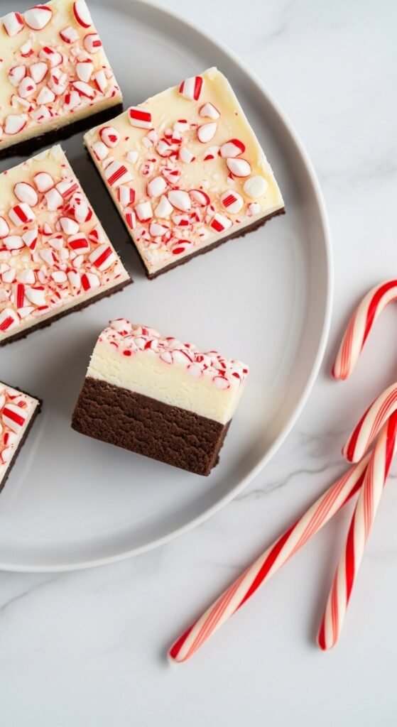 Two layers — dark chocolate fudge on the bottom, white chocolate fudge on top — with crushed candy canes pressed into the surface makes this the most visually impressive fudge on the list. Make the dark chocolate layer first and refrigerate until firm, about 45 minutes. Make the white chocolate layer, let it cool to room temperature, then pour carefully over the dark layer. Immediately scatter crushed candy cane pieces across the entire top surface and press them in gently. Refrigerate until fully set. The peppermint flavour seeps slightly into the white chocolate layer as it chills, which is exactly what you want.