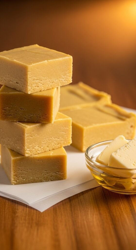 Pure maple syrup replaces sweetened condensed milk in this version — which changes both the flavour and the texture. Maple syrup produces a slightly softer fudge with a distinctly woodsy, almost smoky sweetness that condensed milk-based fudge can’t replicate. Use Grade B (dark) maple syrup for the strongest flavour. Combine with white chocolate, cream cheese, butter, and powdered sugar. Fold in rough-chopped toasted walnuts for bitterness and crunch. The walnut skins add a slight astringency that keeps this fudge from becoming cloying. Press whole walnut halves into the top surface before chilling for a polished presentation.