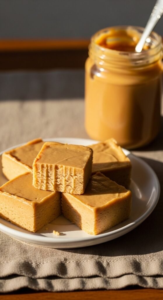 Mashed overripe banana replaces most of the sweetener in this recipe, making it naturally lower in added sugar while contributing a warm, fruity sweetness that works perfectly alongside peanut butter. Mash one very ripe banana until completely smooth — no lumps. Combine with peanut butter, softened butter, powdered sugar, and vanilla over low heat until fluid and uniform. Pour into a lined pan and press banana chips into the top surface. This fudge is softer than most and best eaten cold, straight from the fridge. Use it within four days before the banana flavour starts to oxidise.