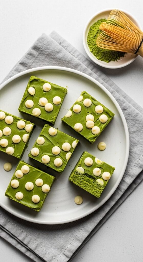 Ceremonial-grade matcha stirred into melted white chocolate and sweetened condensed milk produces a fudge with a vivid green colour and a gently bitter, grassy depth that balances the sweetness of the white chocolate beautifully. Use two teaspoons of matcha for a noticeable but not overpowering flavour. Sift the matcha before adding it — lumps will create uneven green patches throughout the fudge. Press white chocolate chips into the top surface before chilling. Dust the set fudge with an extra half teaspoon of matcha powder just before serving for a clean, finished appearance. These taste as good as they look.
