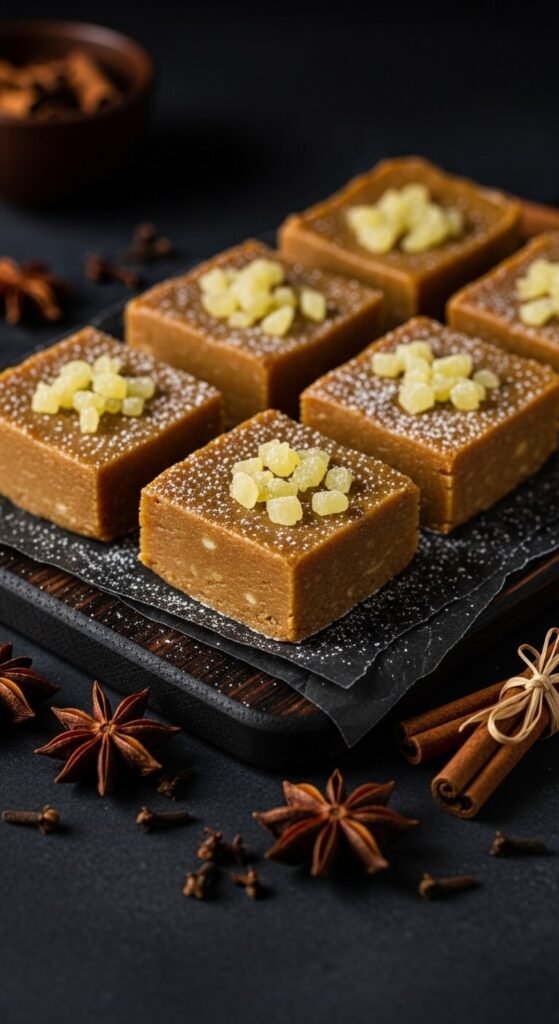 One tablespoon of blackstrap molasses added to a white chocolate-condensed milk base creates a fudge with a deep, warm colour and a gingerbread-like bitterness that sets it completely apart from standard sweet fudge. Add a full gingerbread spice blend: ground ginger, cinnamon, cloves, and a pinch of black pepper. The black pepper adds warmth that rounds out the spice profile without announcing itself. Press crystallised ginger pieces into the top surface and dust lightly with powdered sugar before chilling. These are one of the best edible gifts you can make in November and December — package them in small tins with parchment layers.