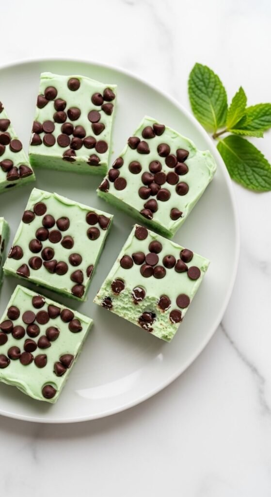 A few drops of green gel food colouring and an eighth of a teaspoon of peppermint extract are all it takes to transform white chocolate fudge into a mint chocolate chip version that looks as good as it tastes. Gel food colouring is more concentrated than liquid — use it sparingly and build to your preferred shade. Fold in mini dark chocolate chips after the mixture cools slightly so they don’t melt completely into the base. Press extra chips into the top surface before chilling. Peppermint extract is strong — add a tiny amount, taste, and add more slowly. It intensifies as the fudge chills.