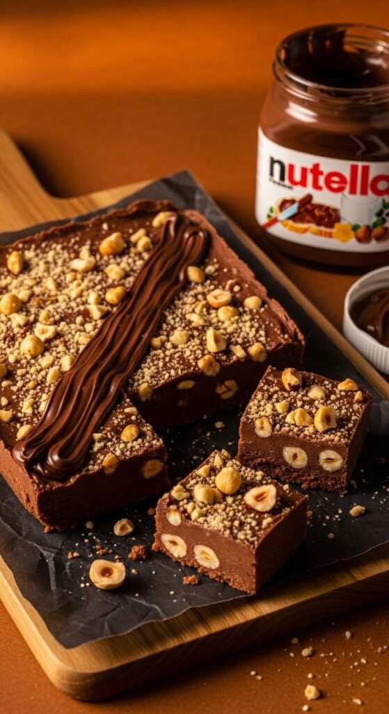 Nutella and sweetened condensed milk melt together in about four minutes and set into one of the richest, most flavourful fudges on this list. Stir constantly over low heat until the mixture is completely smooth and uniform. Pour into a lined pan and immediately press roughly crushed roasted hazelnuts across the top surface, pushing them in slightly so they adhere as the fudge sets. Drizzle extra warmed Nutella in thin ribbons over the chilled, set fudge just before serving. This fudge has a slightly softer set than chocolate fudge — store it cold and slice straight from the fridge.