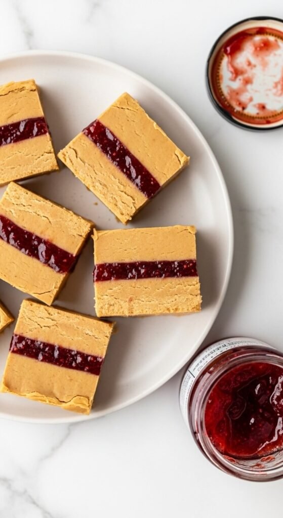 Two layers of peanut butter fudge sandwiching a stripe of strawberry jam creates one of the most visually striking — and nostalgically delicious — fudges on this list. Make the peanut butter fudge base, pour half into the lined pan, and refrigerate for 30 minutes until firm. Spread a generous layer of thick strawberry jam (or any flavour you prefer) over the set layer, then pour the remaining warm fudge on top and smooth carefully. Refrigerate for two hours before slicing. Slice with a hot knife for clean cuts through all three layers. These are a hit with both children and adults.