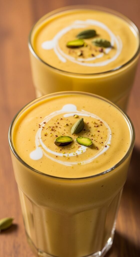 Blend one cup of ripe mango with half a cup of full-fat Greek yogurt, a pinch of cardamom, and one tablespoon of honey until completely smooth. The mixture should be thick enough to hold a swirl at the top — if not, add a tablespoon more yogurt.