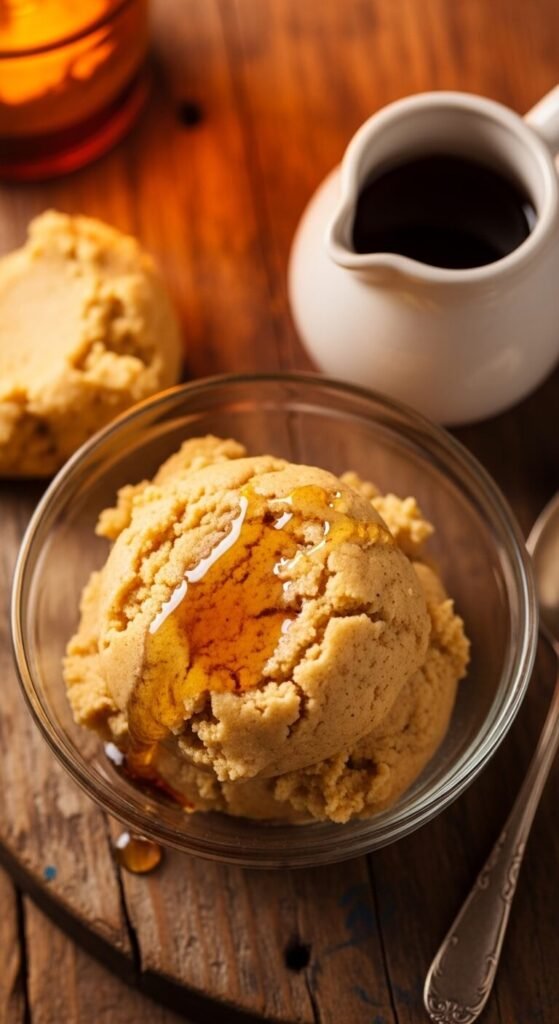 Brown butter changes everything. Taking the extra three minutes to brown the butter before mixing it into this dough creates a warm, nutty, almost toffee-like depth that regular melted butter simply cannot replicate. Let the browned butter cool and solidify slightly before using. Combine with pure maple syrup instead of sugar — it acts as both sweetener and binder. Add heat-treated flour, a pinch of cinnamon, and a handful of toasted pecans. This dough smells and tastes like autumn in a bowl.
