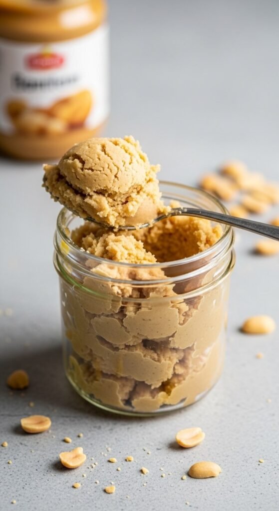 Skip the flour entirely in this version — creamy peanut butter acts as both the base and the binder. Mix it with softened butter, powdered sugar, a pinch of salt, and vanilla. The result is a dense, protein-rich dough that tastes like a peanut butter cup filling in the best possible way. Add mini chocolate chips or chopped peanuts for texture. It’s naturally gluten-free if your peanut butter is certified, making it a great option to bring to gatherings with mixed dietary needs.