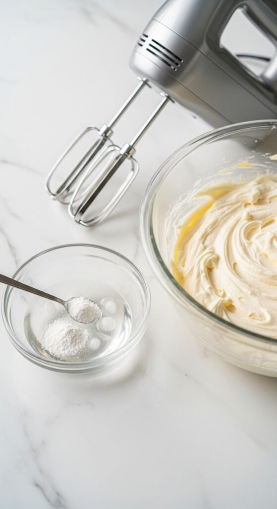 - Pull cream cheese out 30 to 45 minutes before mixing — soft enough to beat smooth but not so warm it’s loose