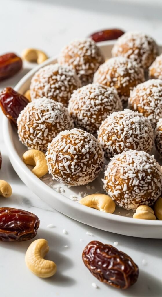 - Lemon Coconut Bliss Balls — Add lemon zest and juice, roll in shredded coconut.