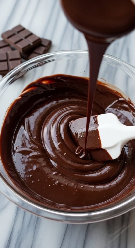 No thermometer? No problem. The chocolate is ready when it feels just barely warm — not hot — against your inner wrist. It should look mirror-shiny and flow smoothly off the spoon.
