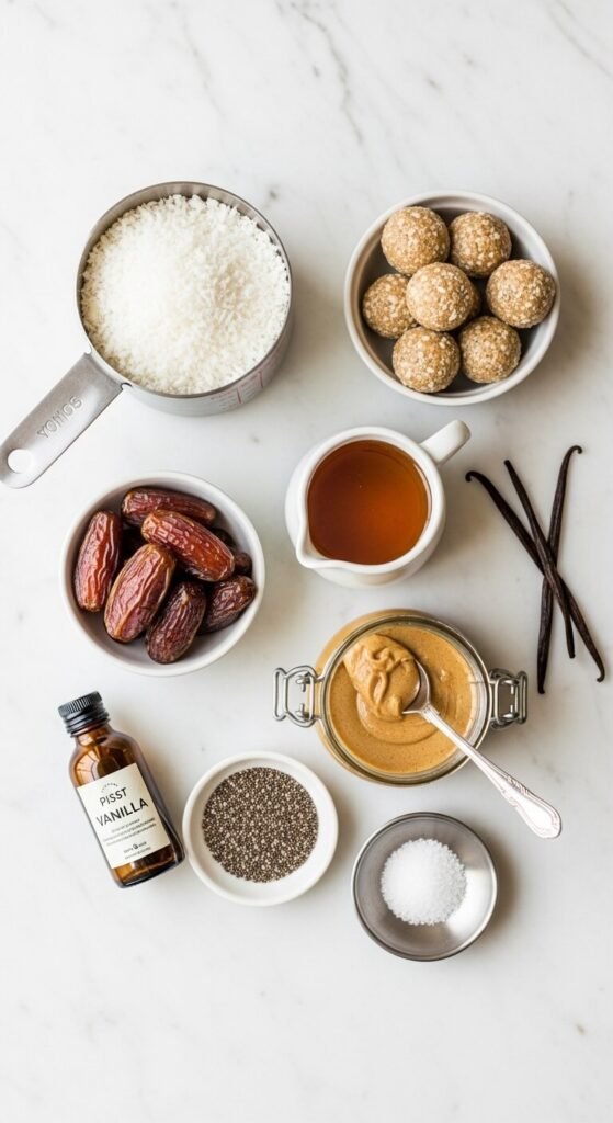 - Binding texture — coconut absorbs moisture from other ingredients and helps hold the mixture together without needing refined flour or starchy binders