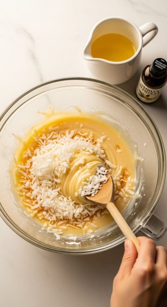 Toasted Coconut Macaroons Before mixing, spread the shredded coconut in a dry skillet over medium heat and stir constantly for 3 to 4 minutes until golden and fragrant. Let it cool fully before adding to the condensed milk mixture. The toasted coconut adds a nutty, caramelized depth that transforms the flavor completely.