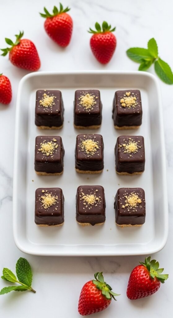 - Peanut Butter Chocolate Bites — swirl 1 tablespoon of peanut butter into the cheesecake filling and coat in dark chocolate for a Reese’s-inspired moment.